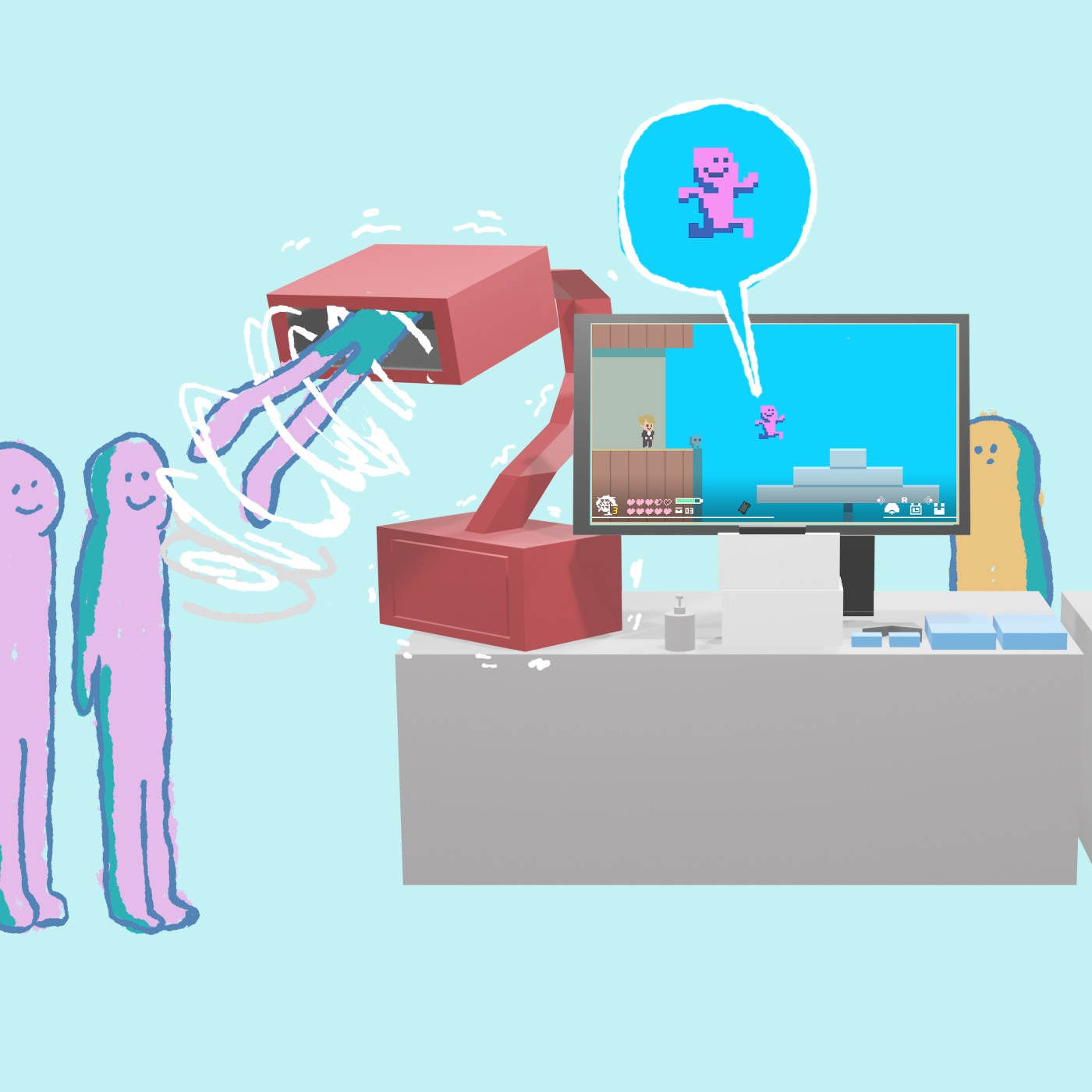 次回ゲーム展示では新発明の「ゲーム入りこみ掃除機さん」を持っていきます。吸い込まれるとゲームの中に転送され、本当に主人公になって冒険できます。誰もが夢見た「ゲームの世界に入る」をぜひご体験ください?!